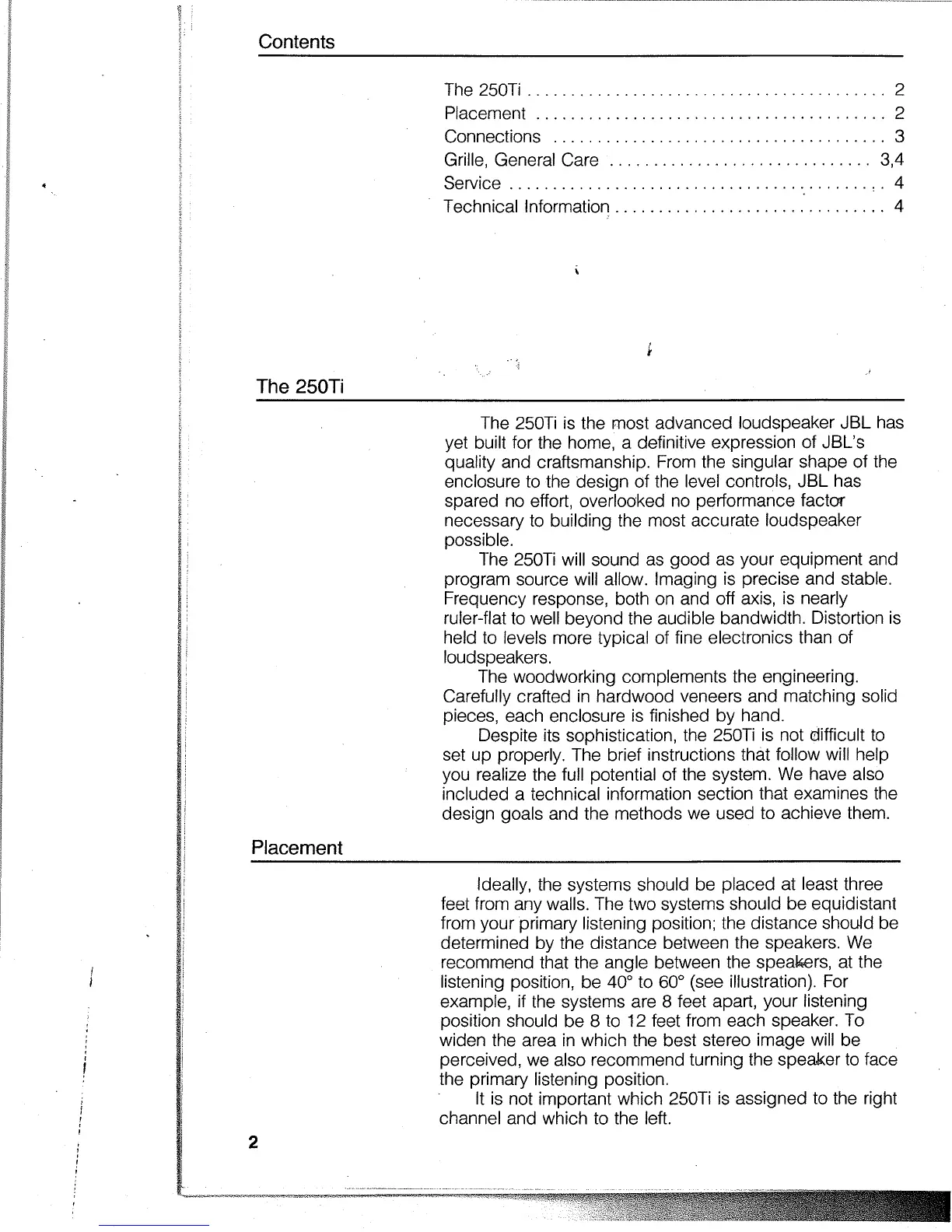 JBL 250TI - The 250 Ti Introduction and Setup; Speaker Placement