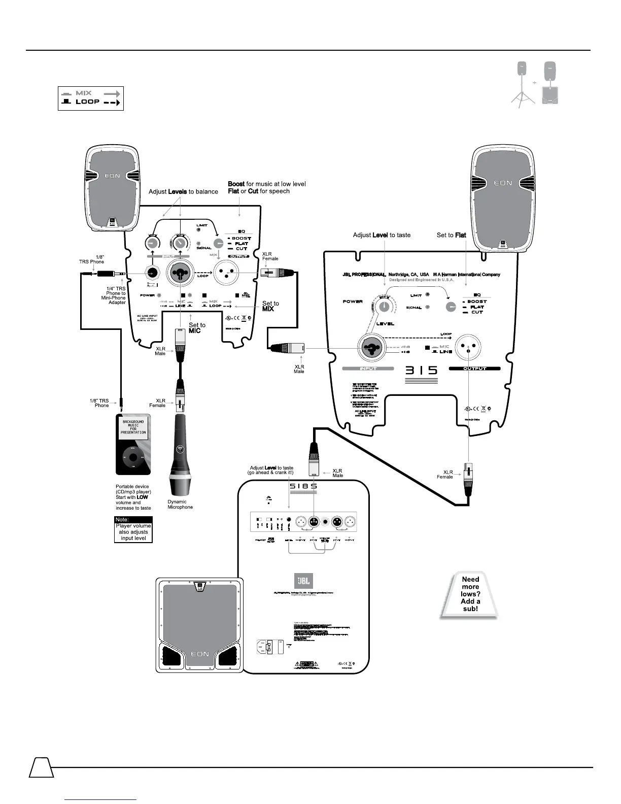 JBL 305 - Simple PA Using Built-In Mixer And Adding More Power
