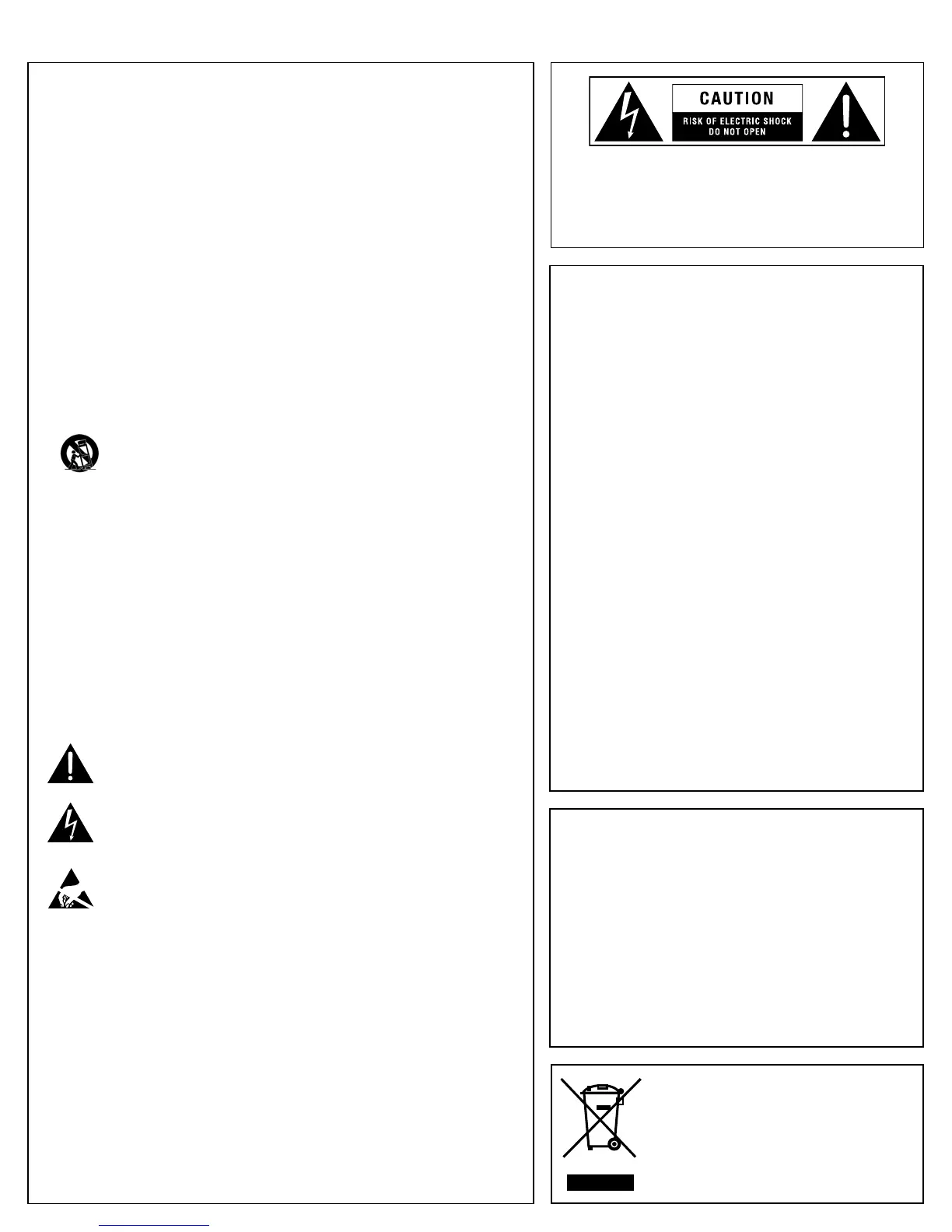 WARNING: To reduce the risk of re or electrical shock, do not expose this apparatus to rain