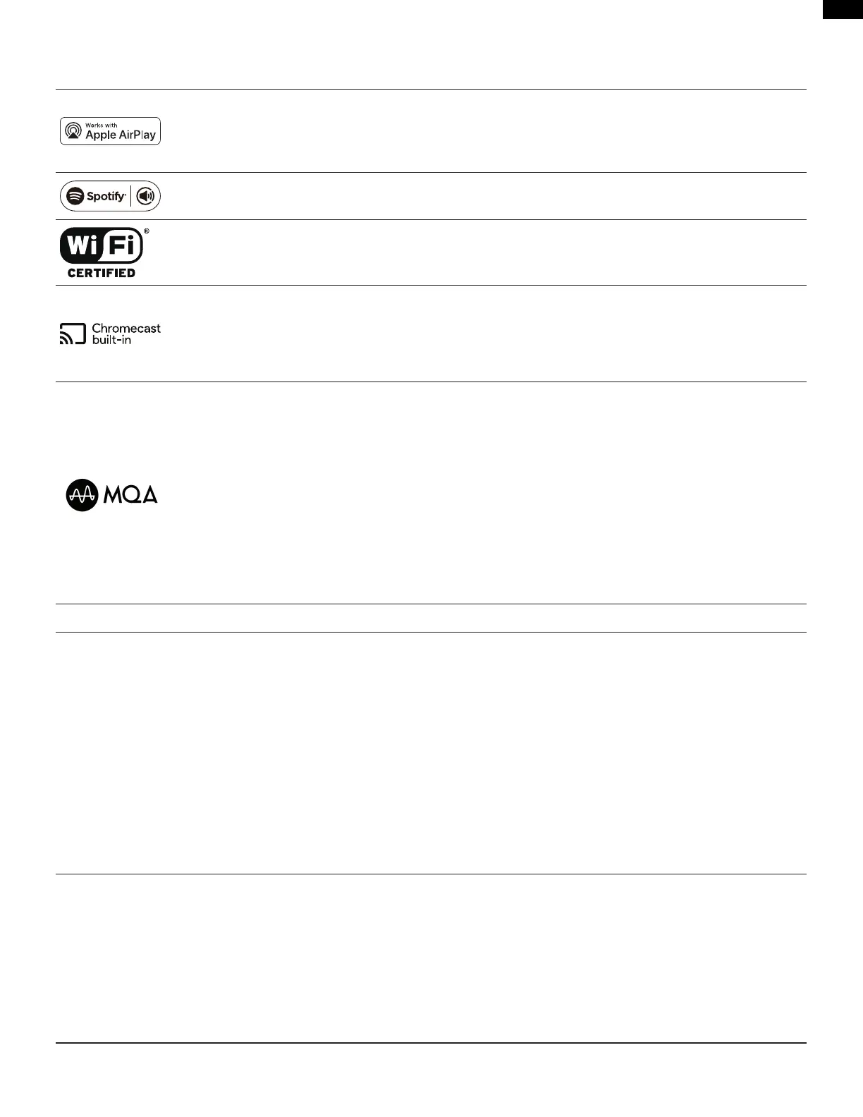MQA 또는 MQA Studio는 본 제품에서 MQA 스트리밍 또는 파일을 디코딩 및 재생하고 있음을 나타내며 사운드가