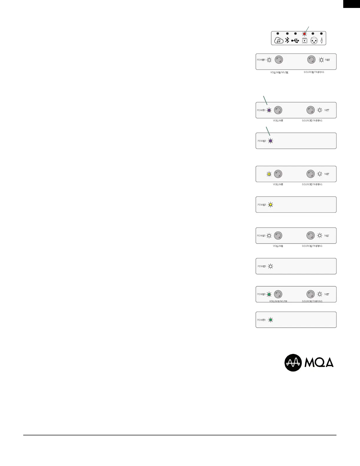 • 流媒体信号源 LED 呈蓝色常亮 = MQA Studio
