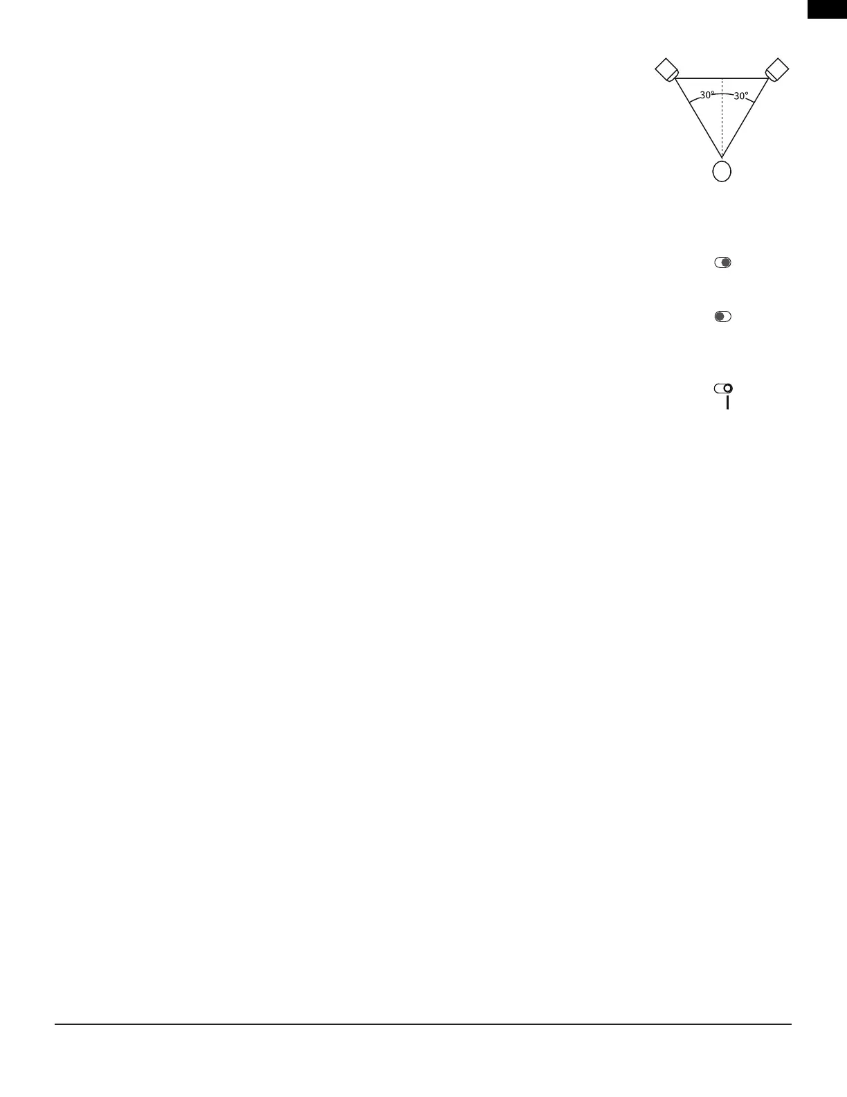측면 위치에서 멀리 떨어져 있거나 스탠드 위에 배치된 경우 0dB로 설정합니다.