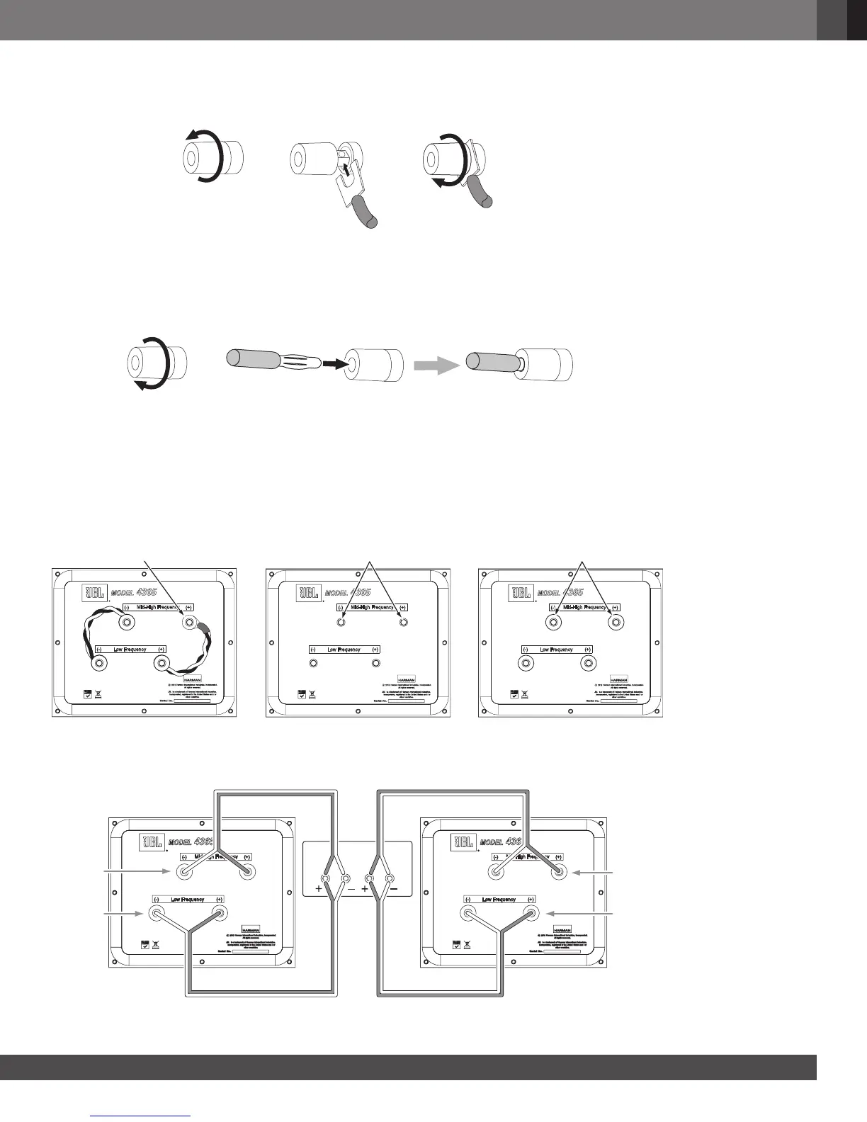 If you’re bi-wiring with a single stereo power amplifier, connect the speakers according to the following illustration.
