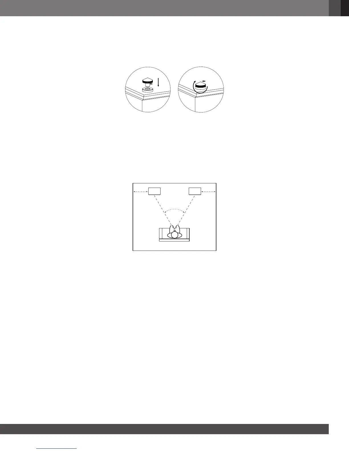 청취자와 스피커 사이 각도가 40 ~ 60도일 때 스피커가 가장 정확한 스테레오 사운드 스테이지를 구현합니다.