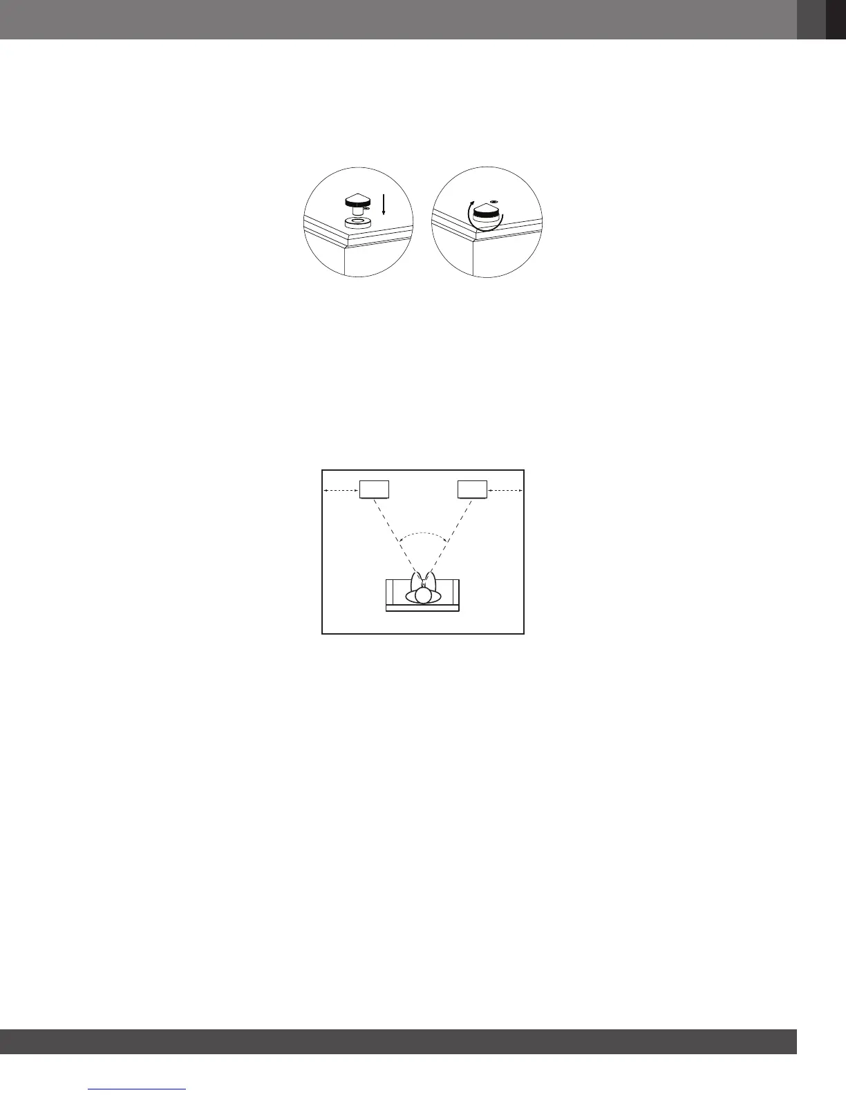 听众和扬声器之间的角度保持在 40 至 60 度之间时,扬声器才能够产生出最准确的立体声声场。