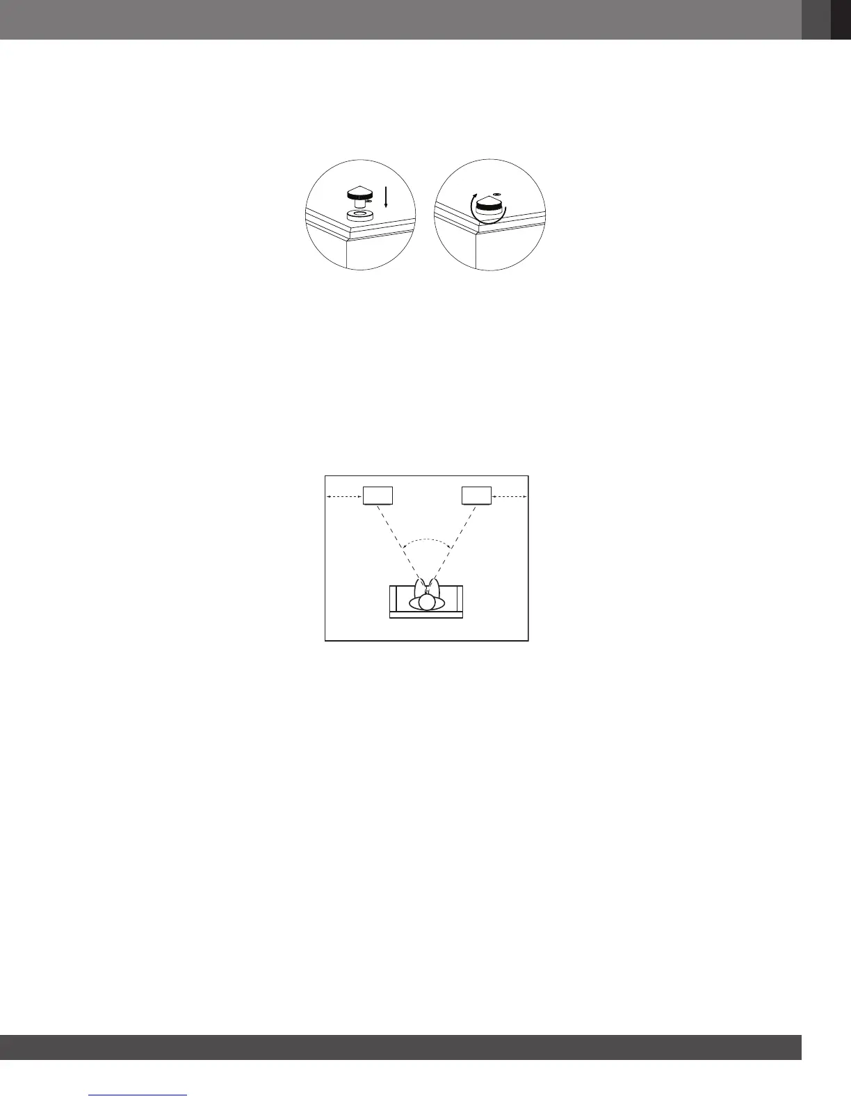 Høyttalerne vil gi det mest nøyaktige stereo-lydbildet når vinkelen mellom lytteren og høyttalerne er mellom 40 og 60 grader.
