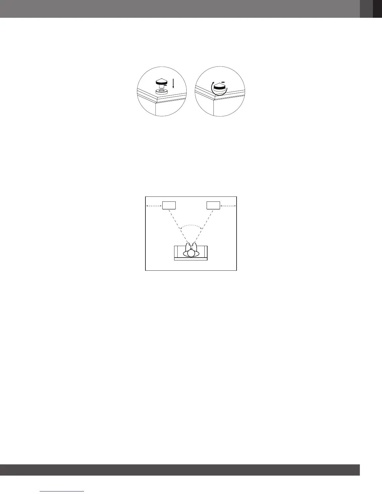 Högtalarna ger den mest exakta ljudåtergivningen när vinkeln mellan lyssnare och högtalare är mellan 40 och 60 grader.
