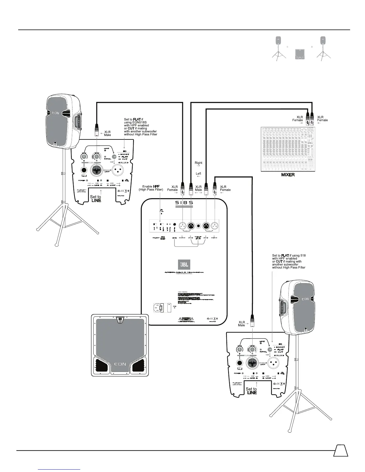 JBL 5185 - Simple PA Using External Mixer and Subwoofer EON510 - EON518 S