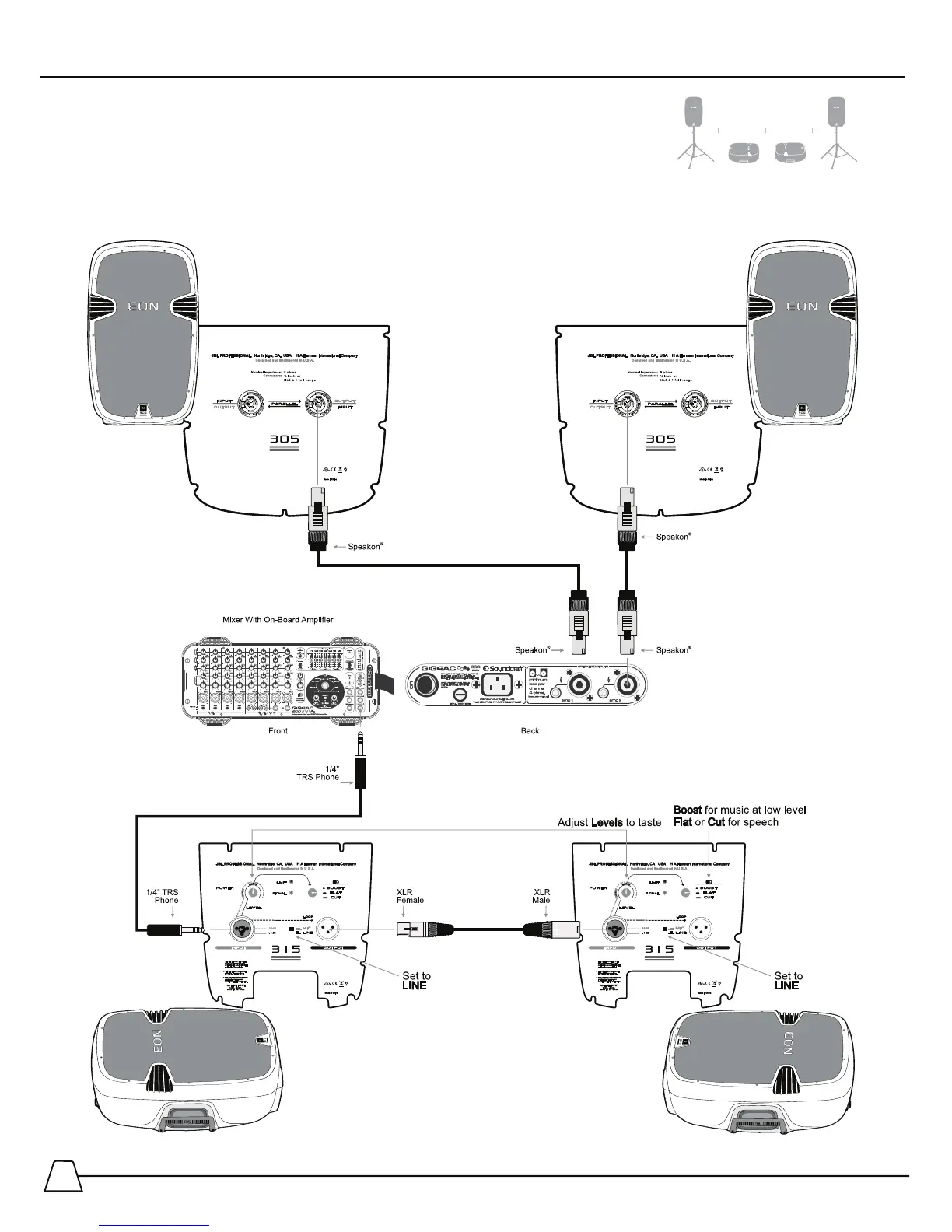 JBL 5185 - PA Using Powered Mixer and Powered Monitors EON305 - EON515