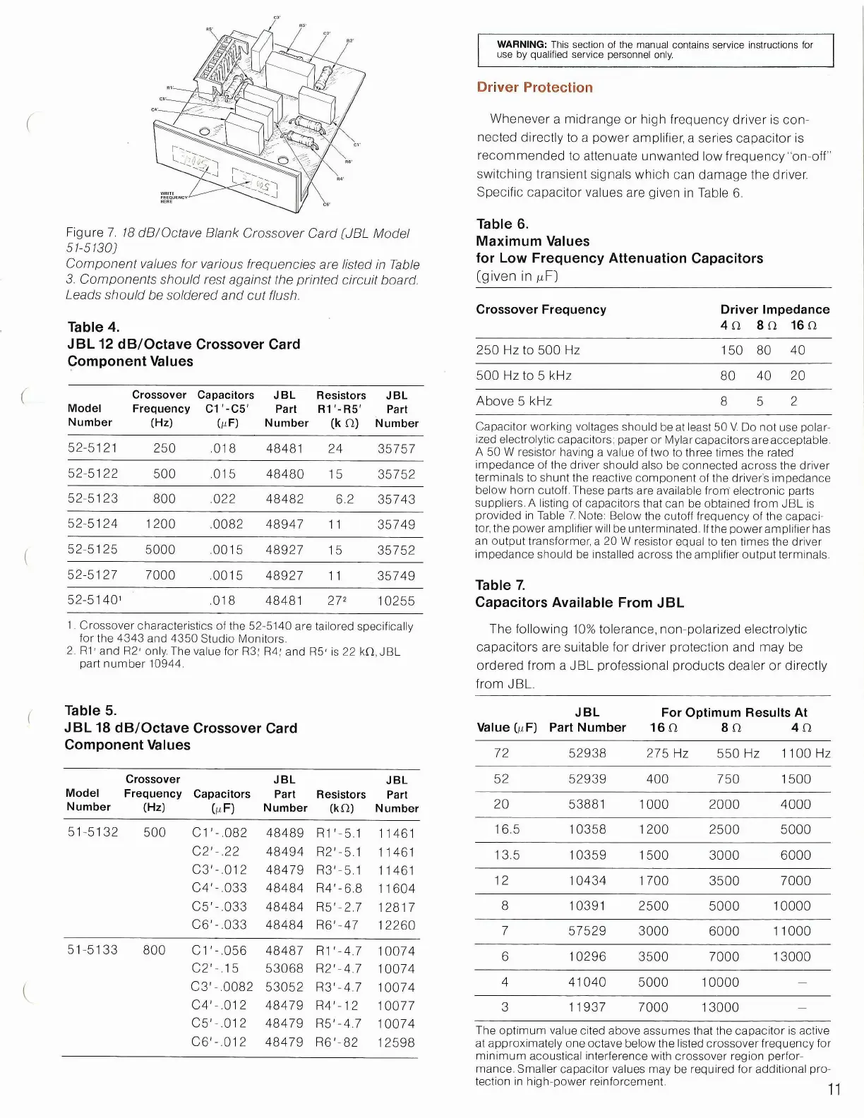suppliers. A listing of capacitors that can be obtained from JBL is