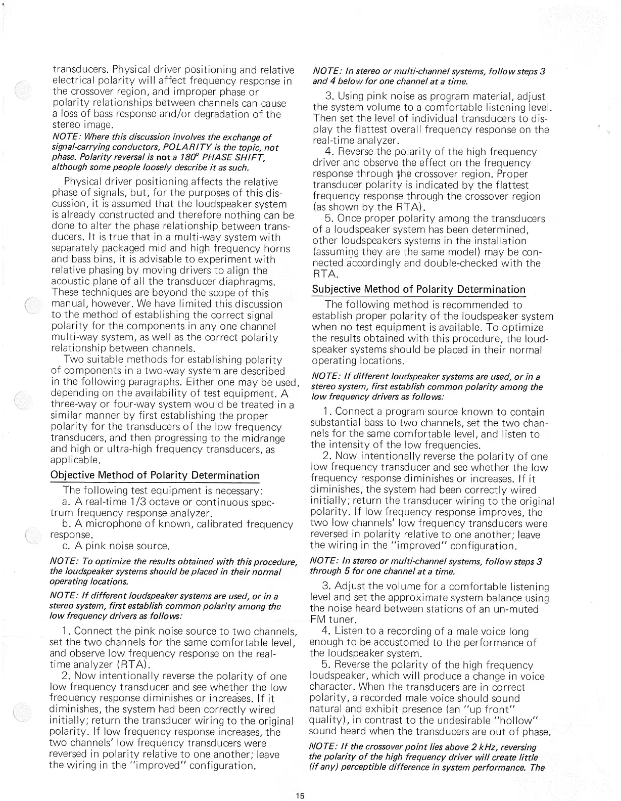 proper polarity of the loudspeaker system