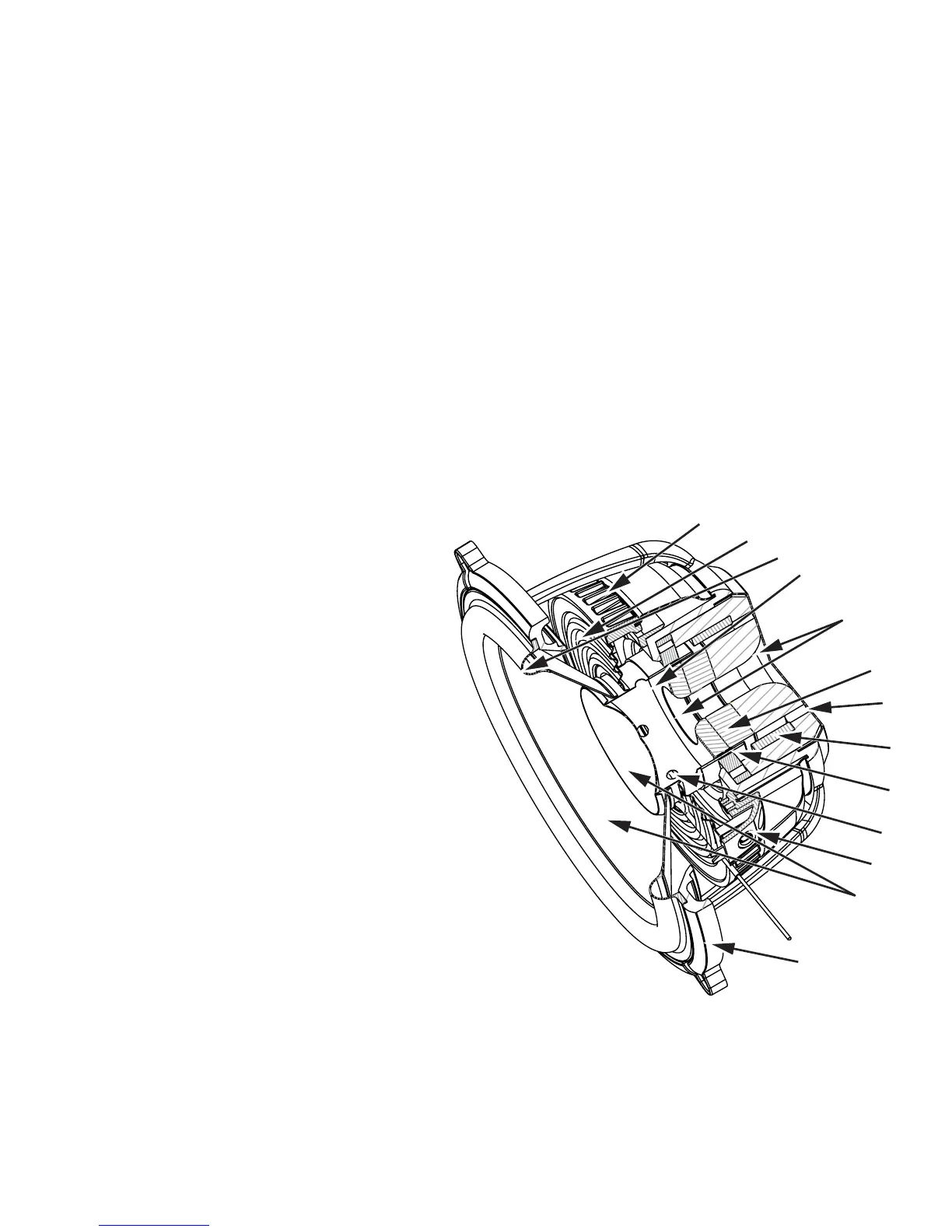 speaker’s suspension. The motor includes a copper polepiece cap and a fl ux stabilization ring that work together to produce a linear voice coil inductance that mini-