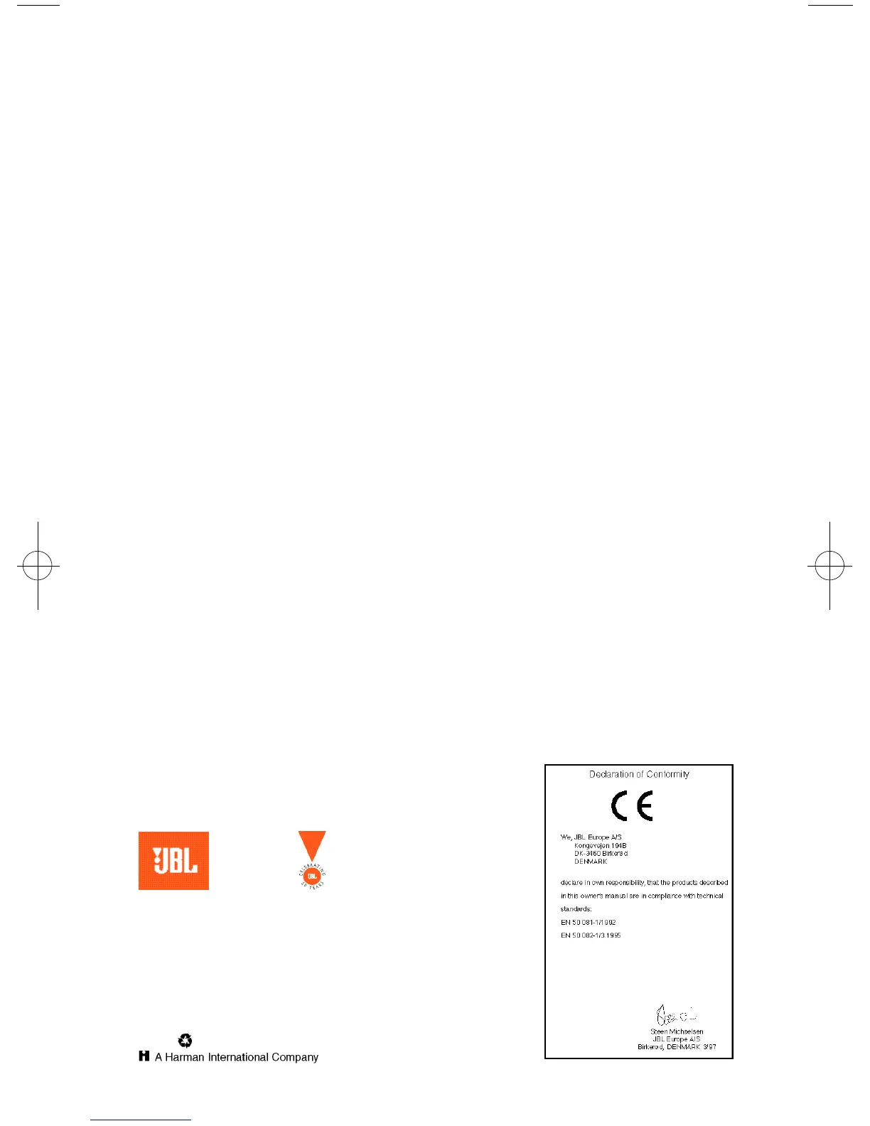 1997 JBL, Inc o r p o ra t e d . JBL is a re g i s t e r ed tra de m ark