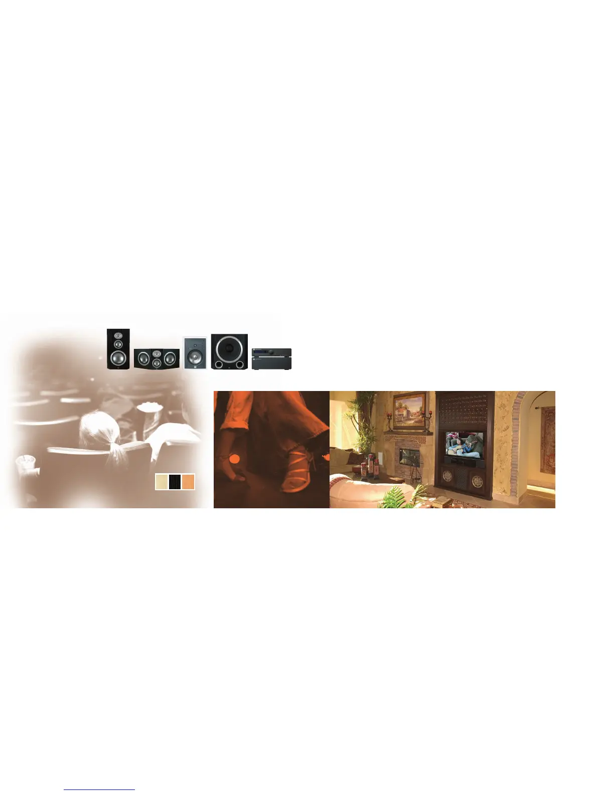 BEST OF BOTH WORLDS. Powerful on-wall front and center channel speakers teamed up with no-compromise in-wall