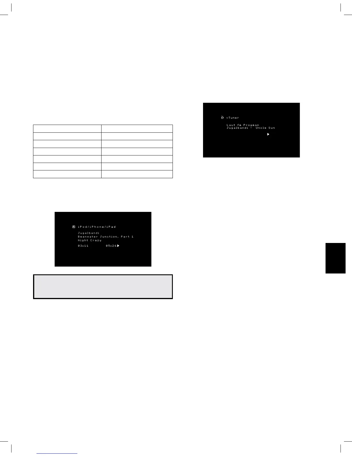 När en kompatibel iPod, iPhone eller iPad ansluts till ljud-/videomottagarens USB-