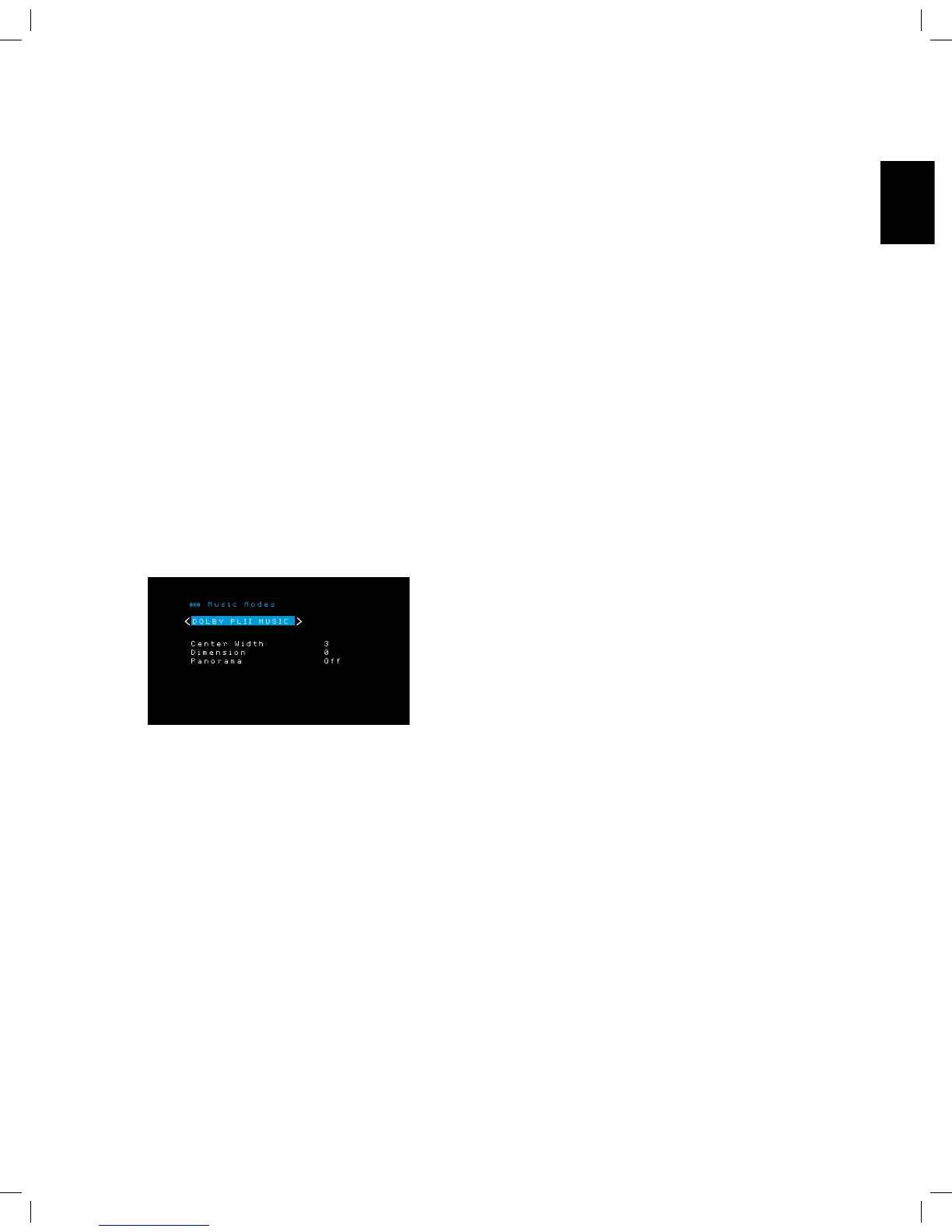 • Music (Musique): Logic 7 Music, DTS Neo:6 Music, Dolby Pro Logic II Music.