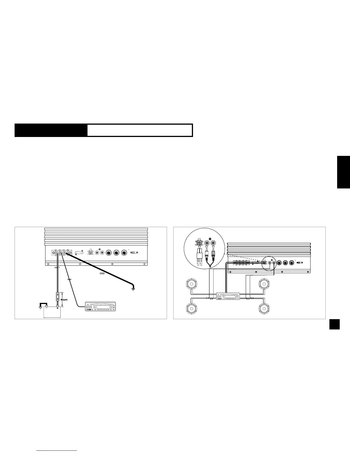 (RCA-liitin) ja kahdella kaiutintulolla.