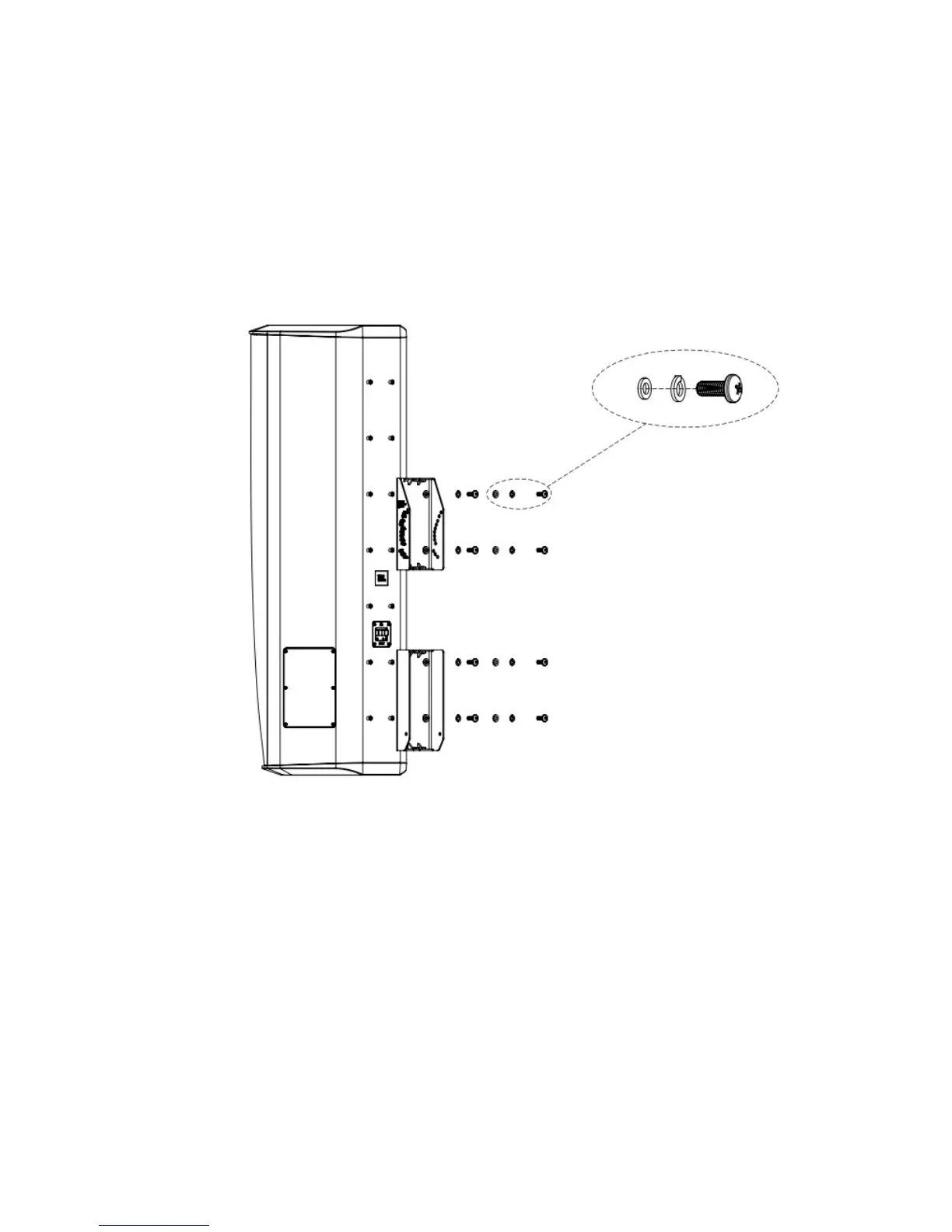 Mount the SPEAKER BRACKET (2 pcs) to the speaker with the provided M8 x20 mm pan-head bolts, in