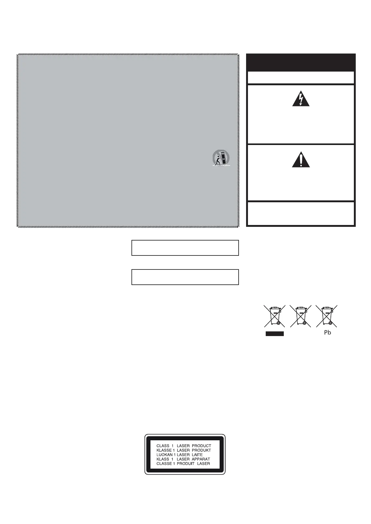16. To completely disconnect this apparatus from the AC Mains, disconnect the power supply cord plug from the AC