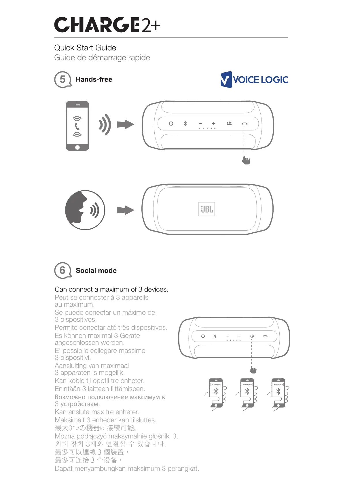 JBL Charge 2 Plus - Advanced Features and Warnings