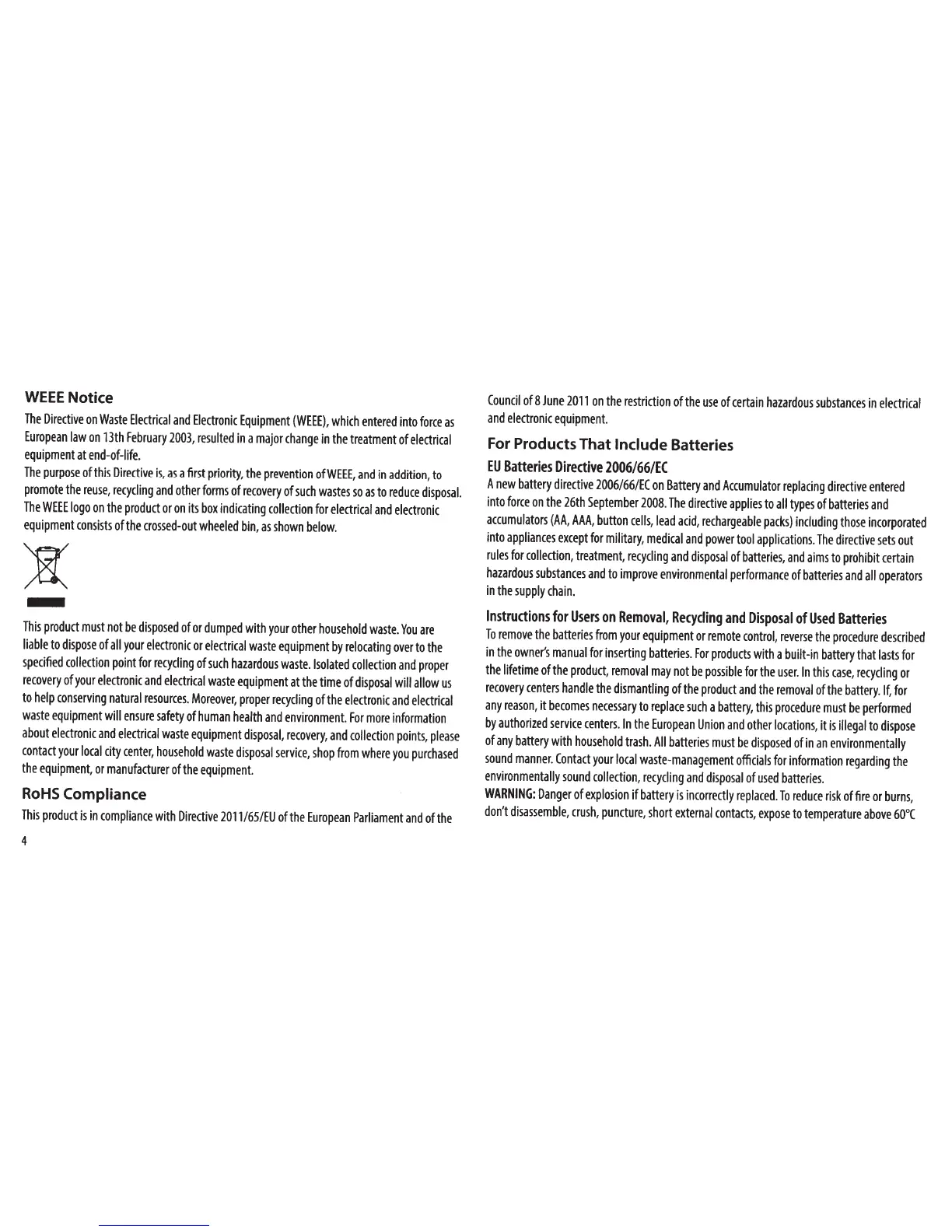 JBL Charge 2 - Environmental and Disposal Information; WEEE Disposal Notice; RoHS Compliance Statement; Battery Directives and Disposal