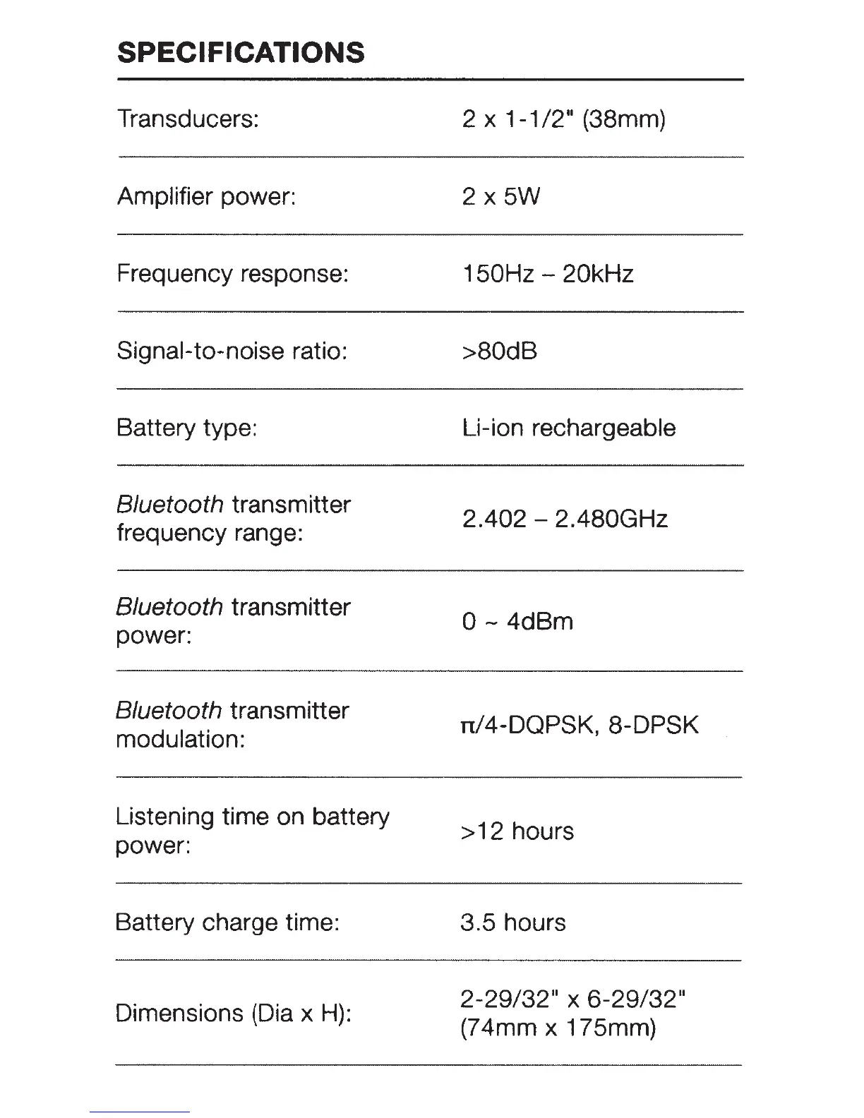SPECIFICATIONS