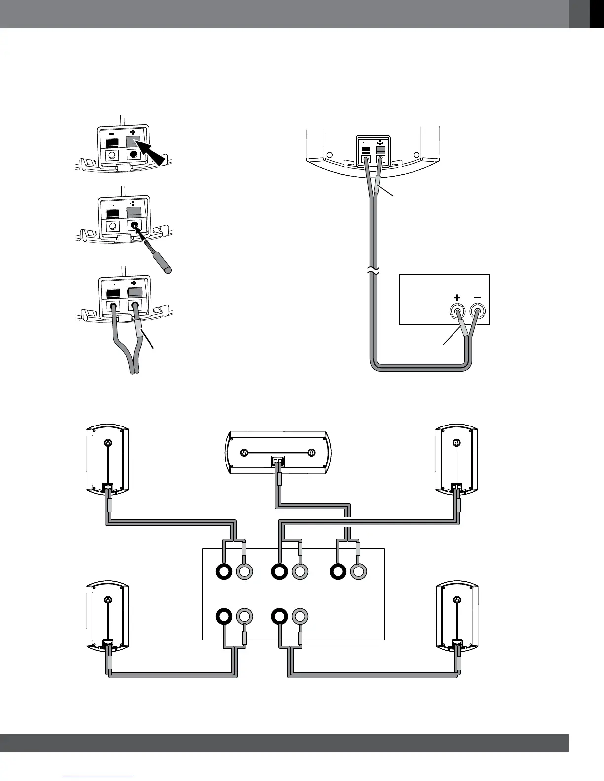 CAUTION: Before making speaker connections, be sure that your receiver or amplifier is turned off and preferably that its AC cord is