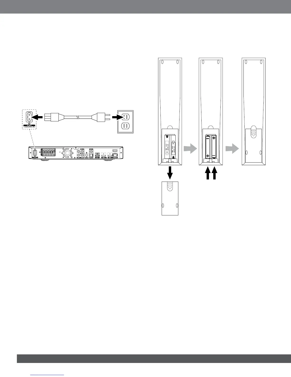 Your receiver’s remote control uses AAA batteries (supplied). Insert the