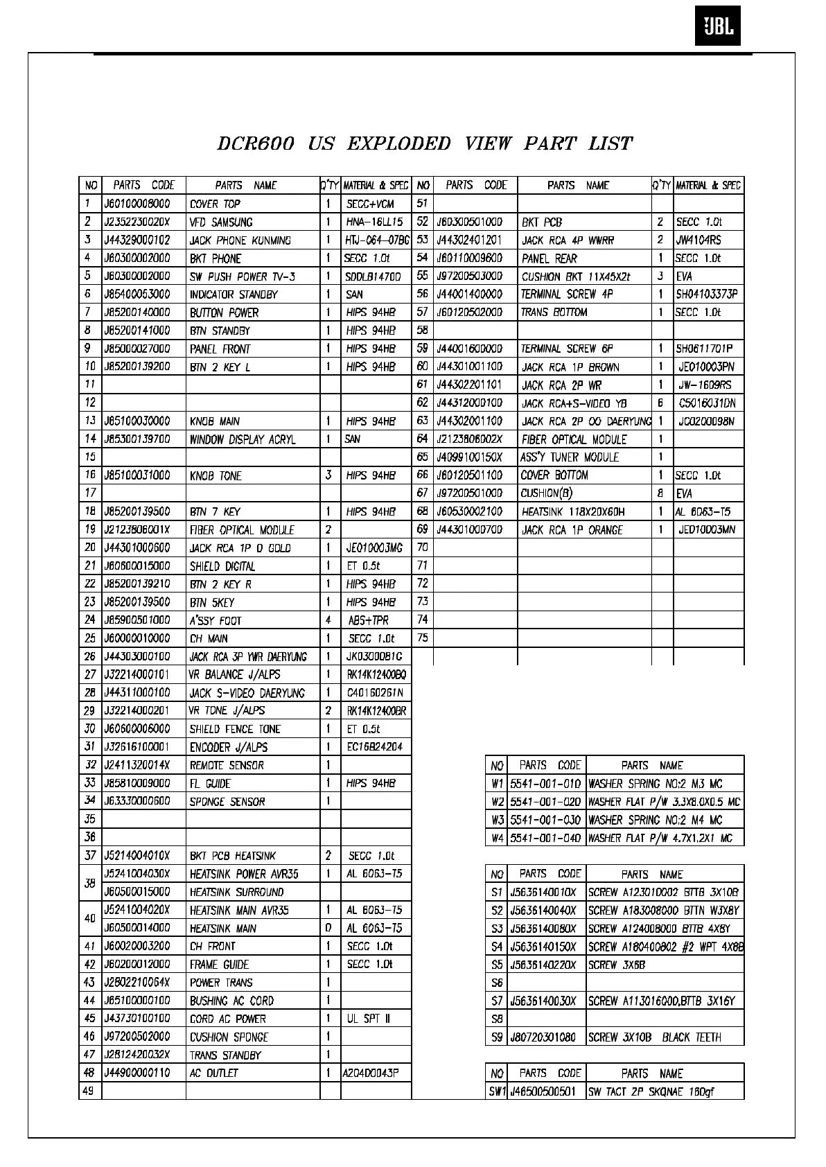 JBL CINEMA PROPACK 600 - Exploded View Parts List