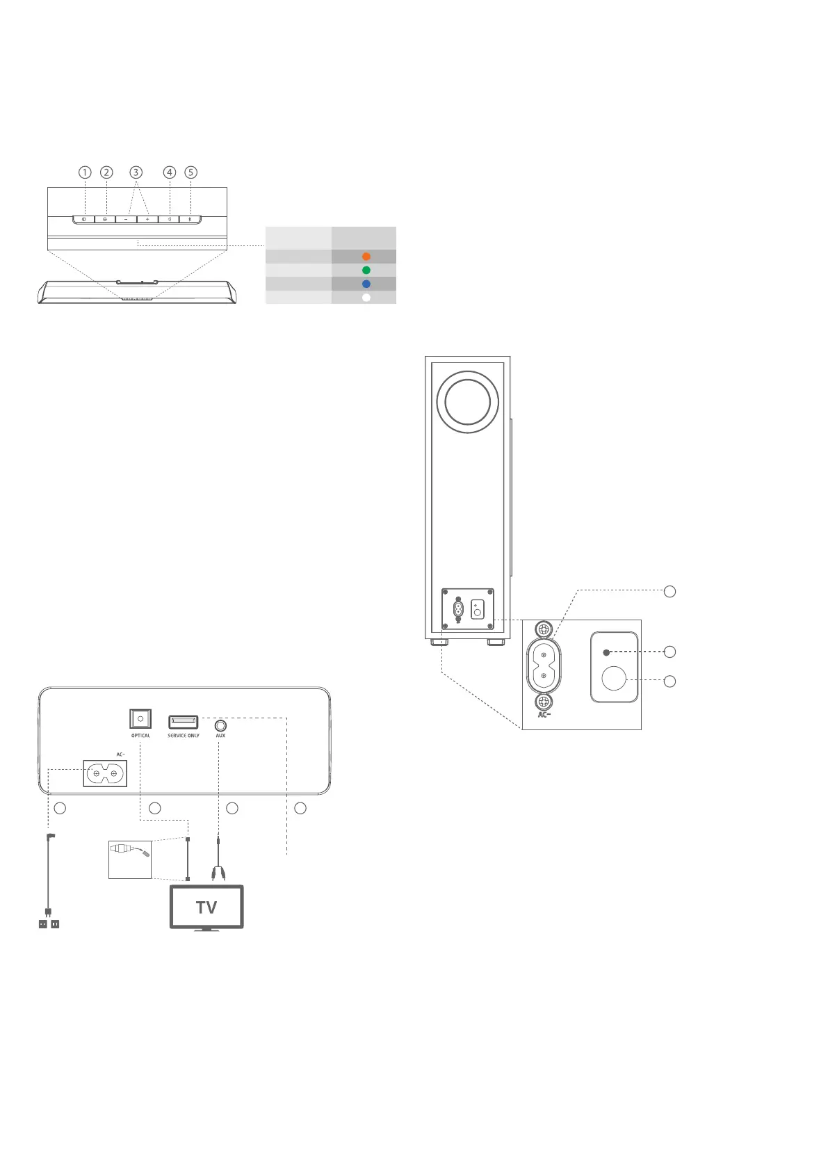 • The LED lights blue continuously when the subwoofer is on and linked to the
