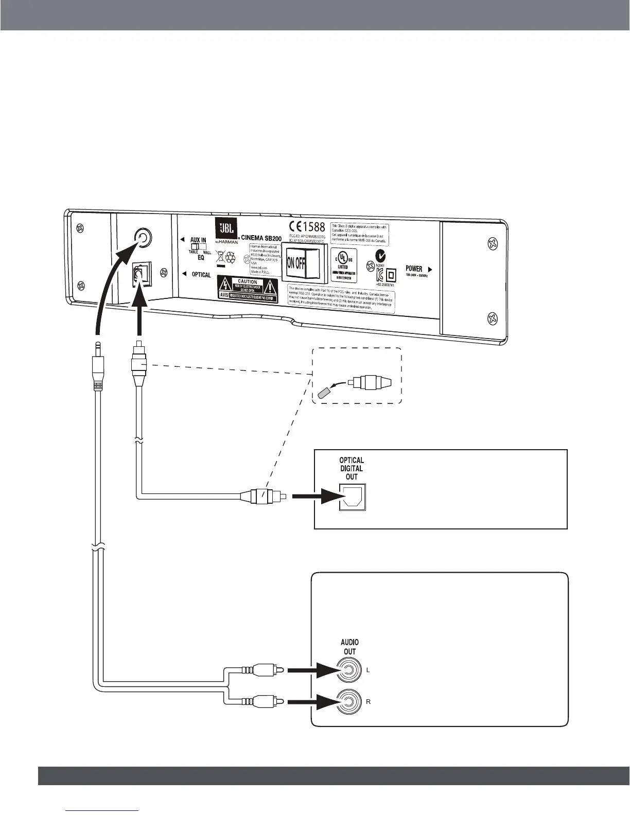 Analog: Use the supplied stereo audio cable to connect the soundbar’s