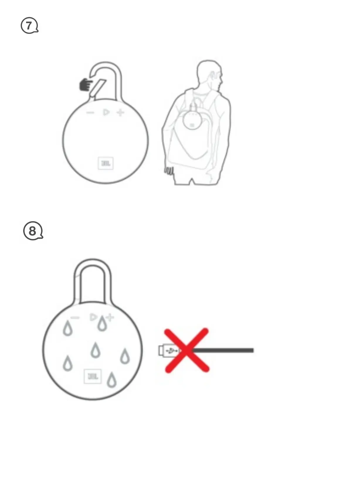 IMPORTANT: To ensure that the JBL Clip 3 is waterproof, please remove all cable connections and
