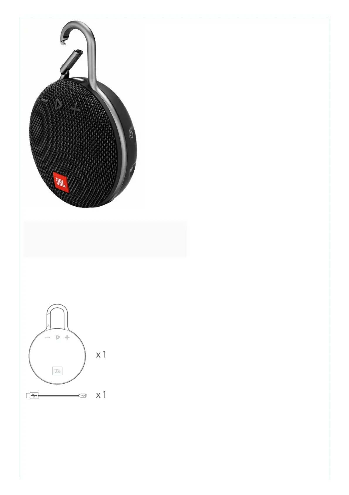 JBL Clip3 - Getting Started with JBL Clip 3; Whats in the Box; Device Buttons