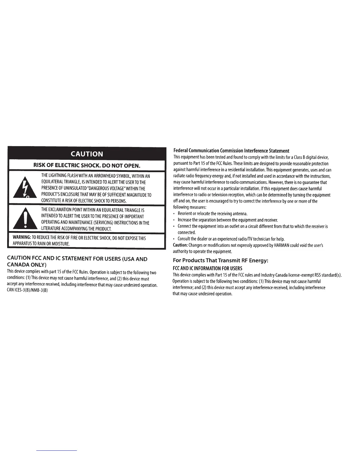 JBL CLIP+ - Device Safety and Regulatory Notices; Electrical and Fire Safety Warnings; FCC and IC Compliance Statements