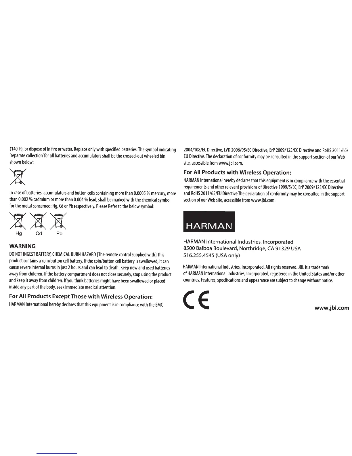 JBL CLIP+ - Product Compliance and Declarations; Wireless Operation Compliance; General Product Compliance