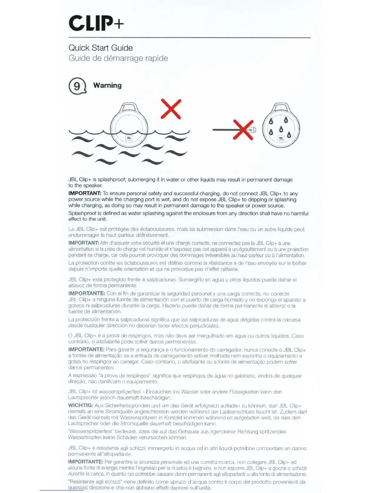 ensure personal safety and successful charging, do not connect JBL Clip+