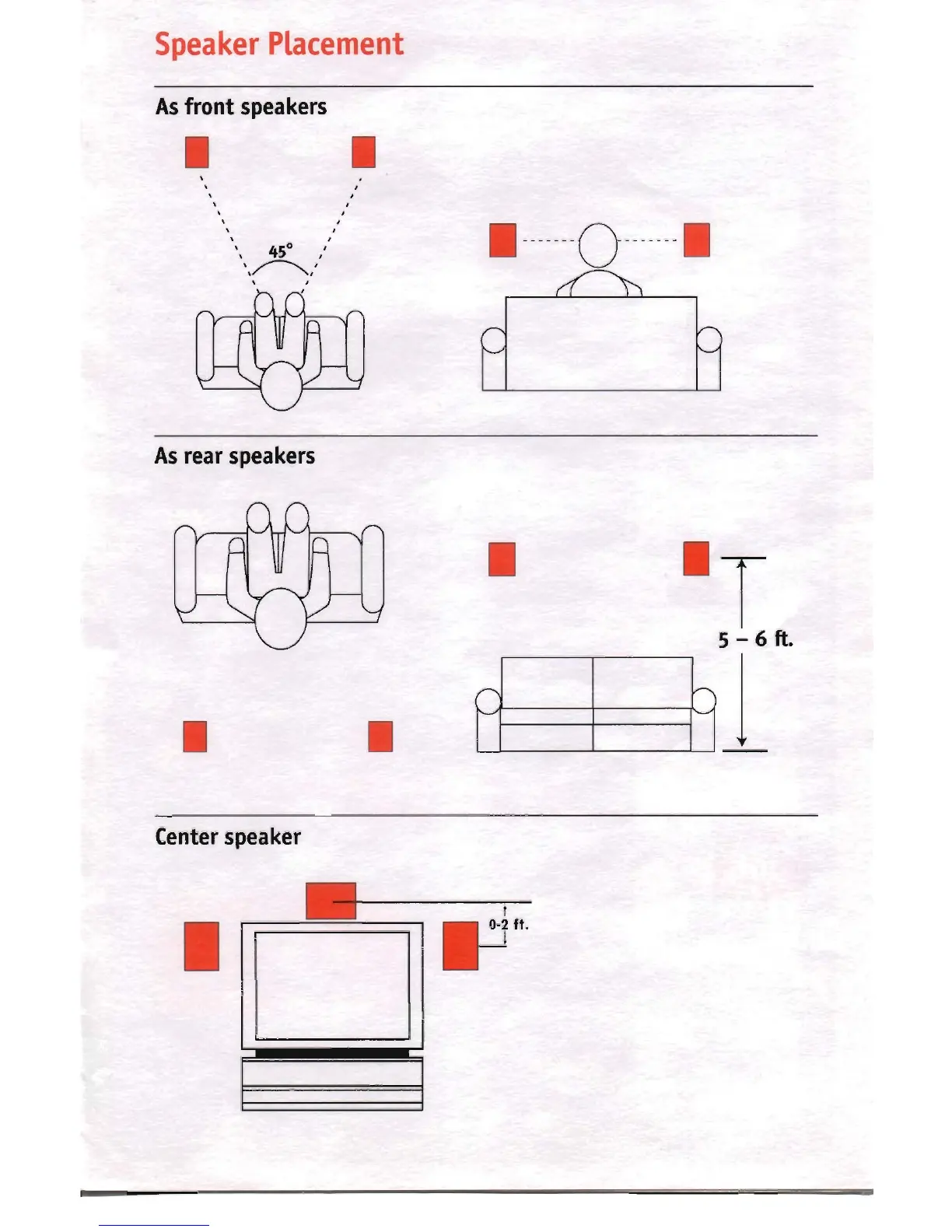 JBL CM40 - Speaker Placement; As front speakers; As rear speakers; Center speaker