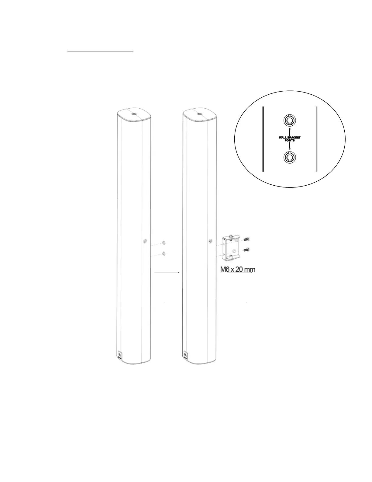 2.1) Identify the COL speaker’s two back panel mounting points, labeled on the back panel as “WALL BRACKET POINTS”.