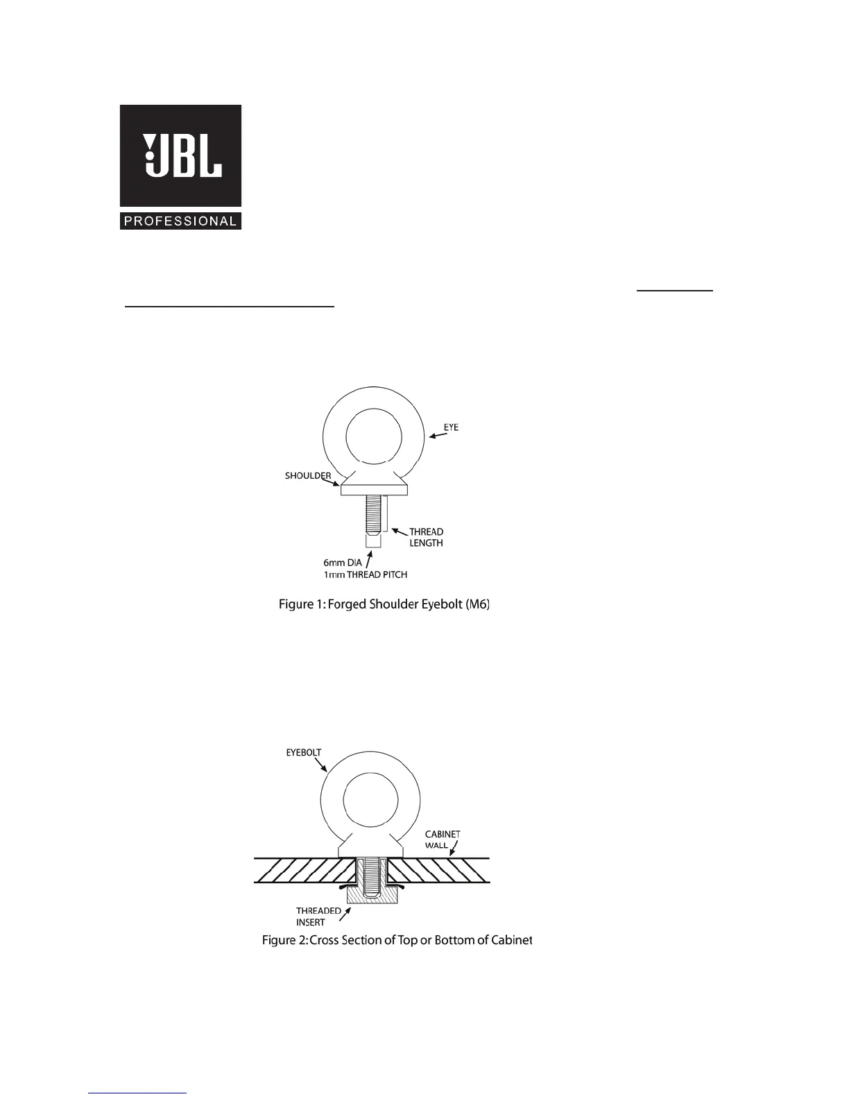 When suspending JBL Control 29AV or Control 30 loudspeakers, you MUST utilize