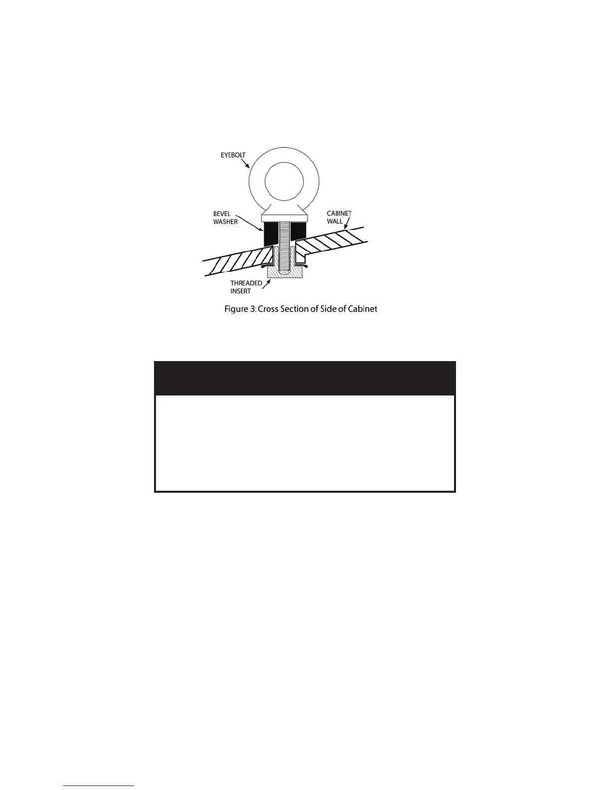 Side Inserts -- When using the installation points on the sides of the cabinet, you must use the