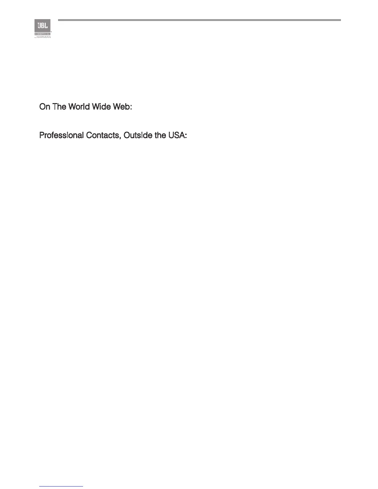 For additional information, please consult JBL Professional Customer Service, your system