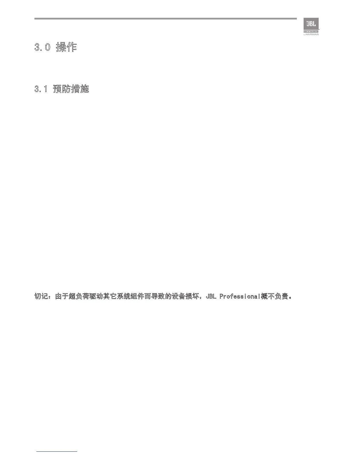 切记:由于超负荷驱动其它系统组件而导致的设备损坏,JBL Professional概不负责。