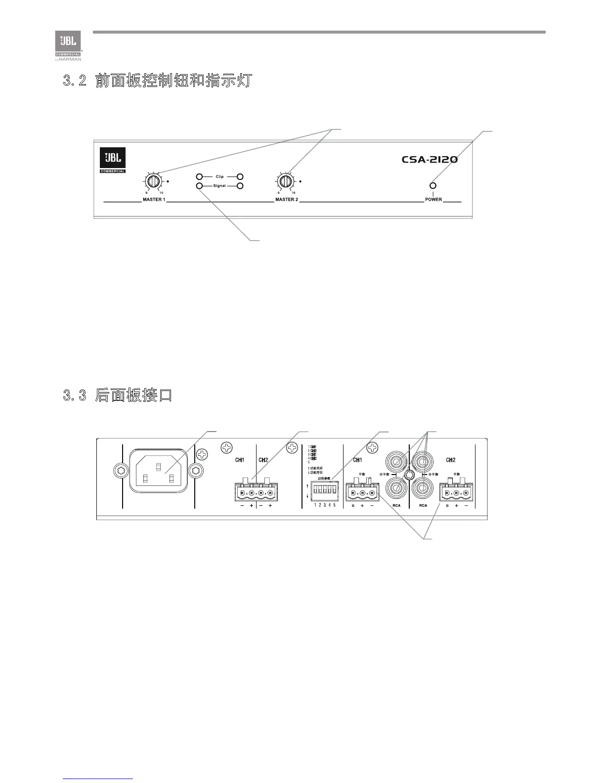 • 削波指示灯:当输入信号过大时,红色LED指示灯点亮。