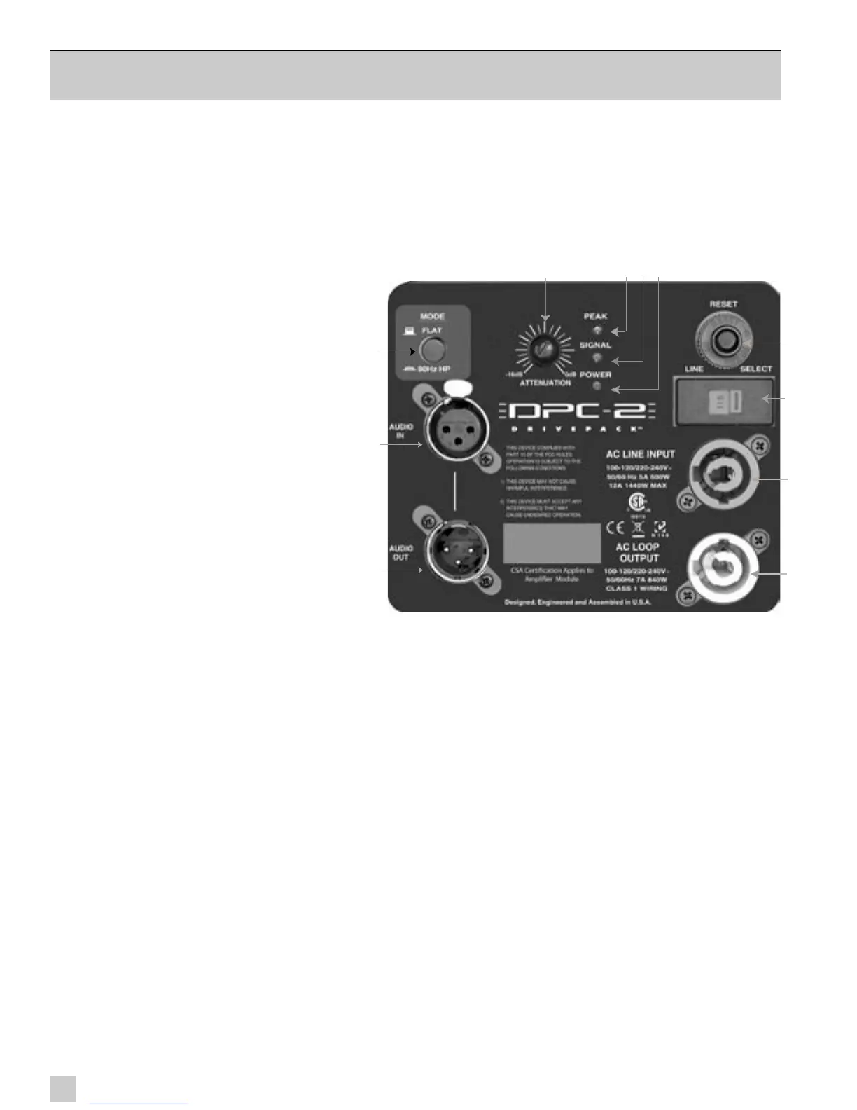a) (Clip) Red LED, Clip detection monitors input, DSP, and each amplifier output channel. The LED illuminates