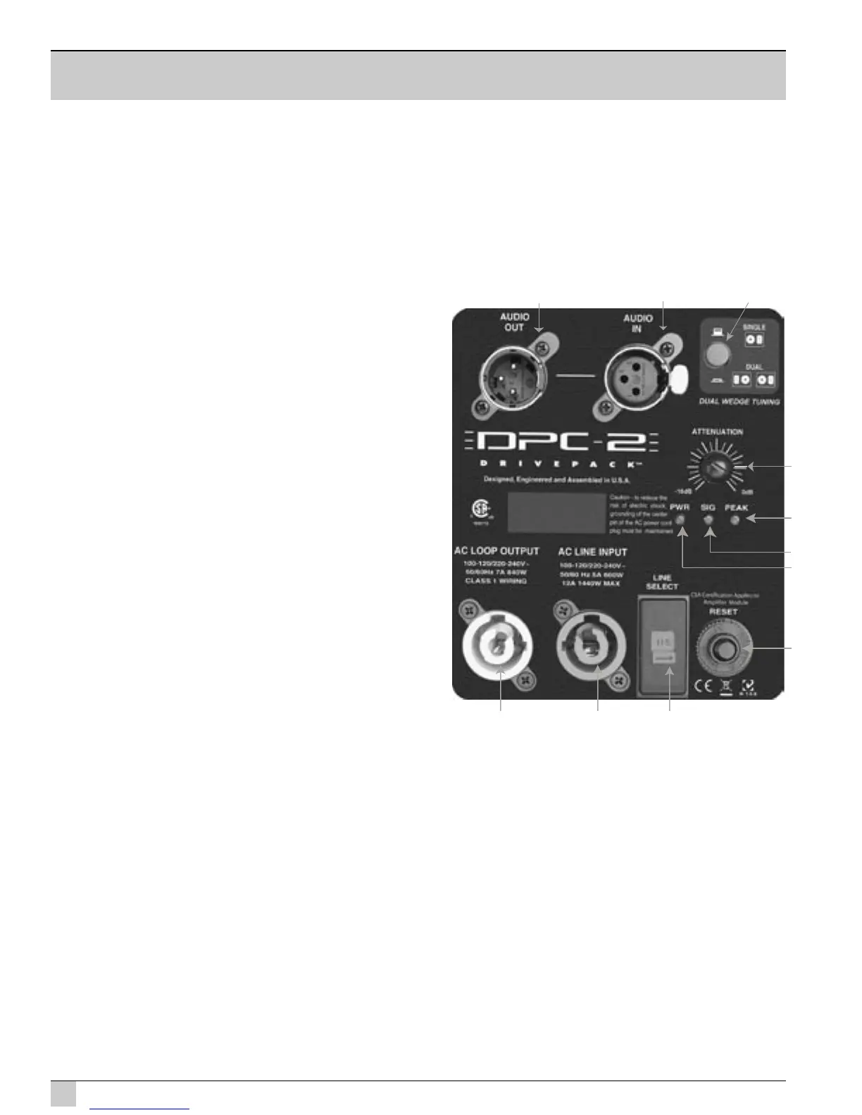 each amplifier output channel. The LED illuminates when overload at any point is detected.