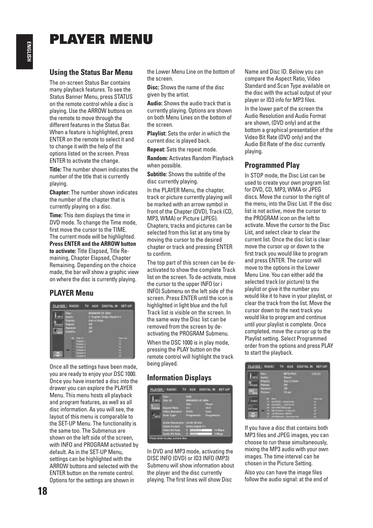 PLAYER Menu