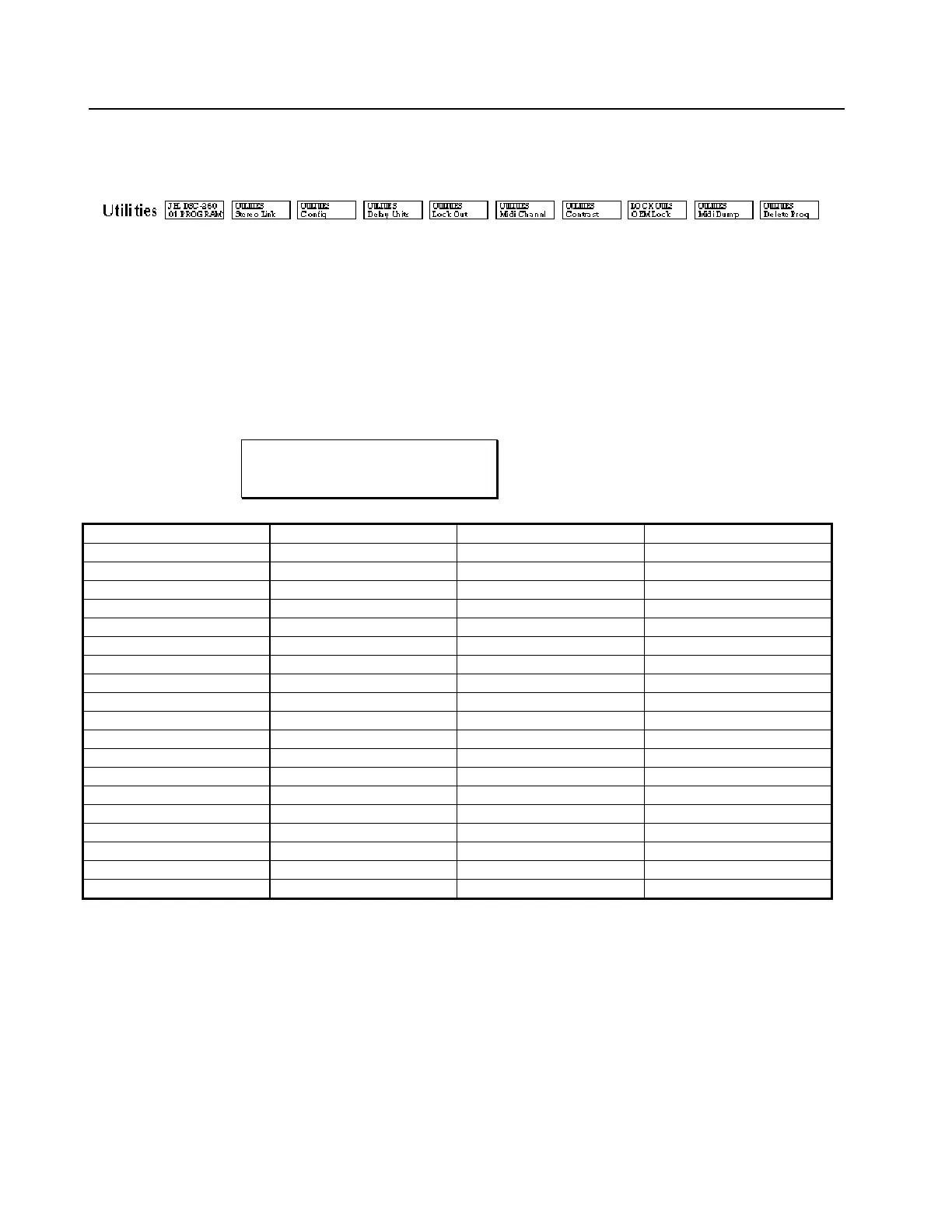 To access the Utilities Row use the Up or Down Access keys to scroll through the rows. Individual Utility parameters are