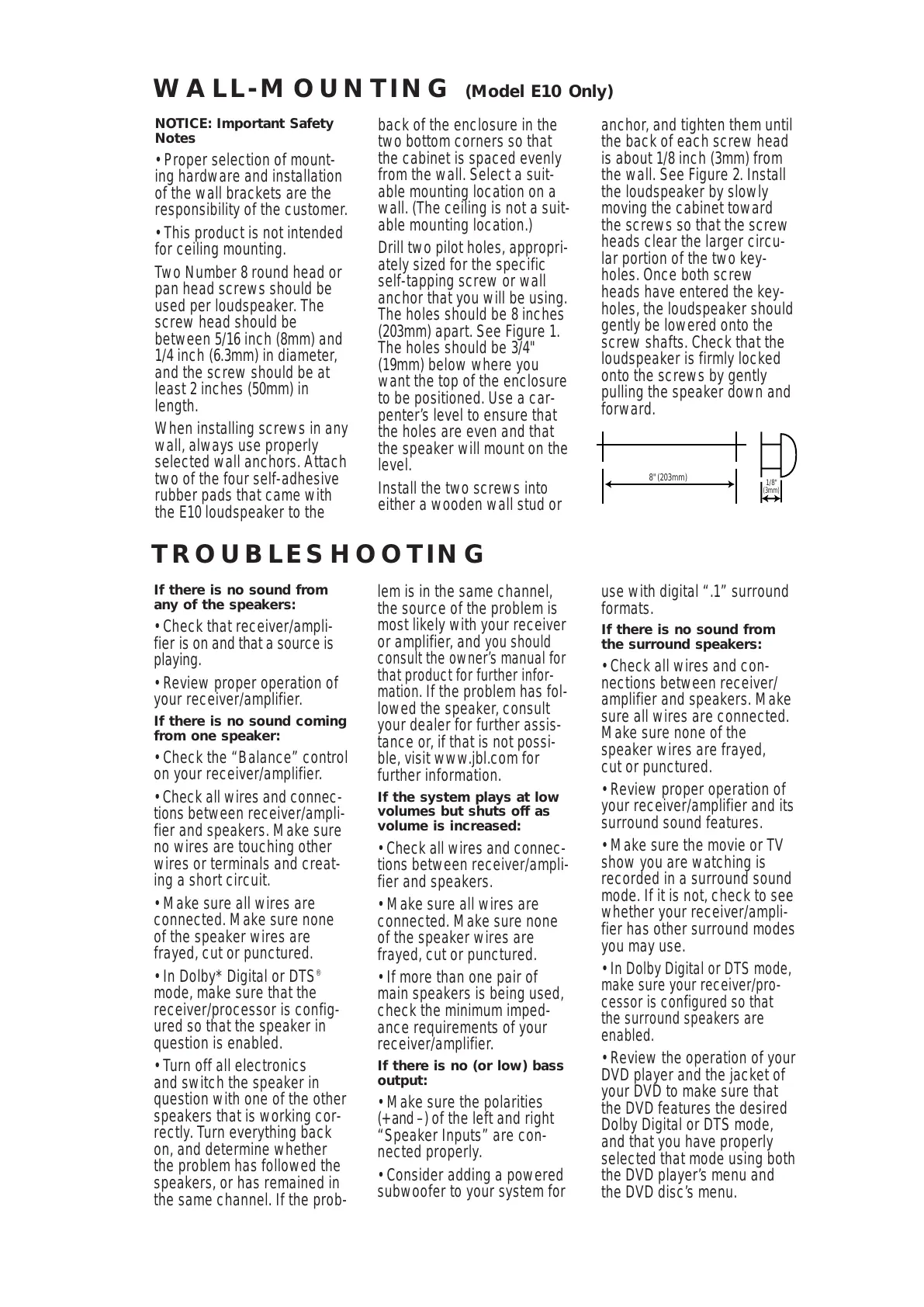 WALL-MOUNTING (Model E10 Only)