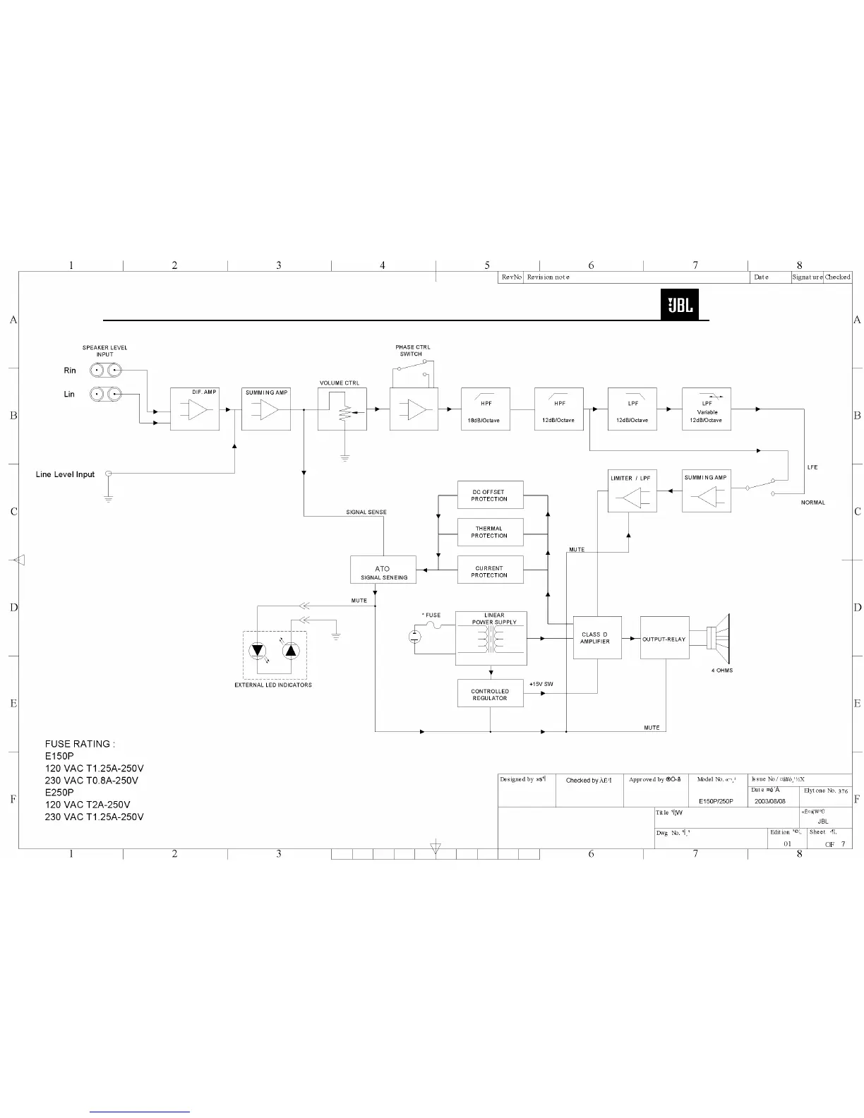 JBL E250P - AMPLIFIER BLOCK DIAGRAM; Input Signal Stages; Signal Processing Blocks; Output Stage Diagram