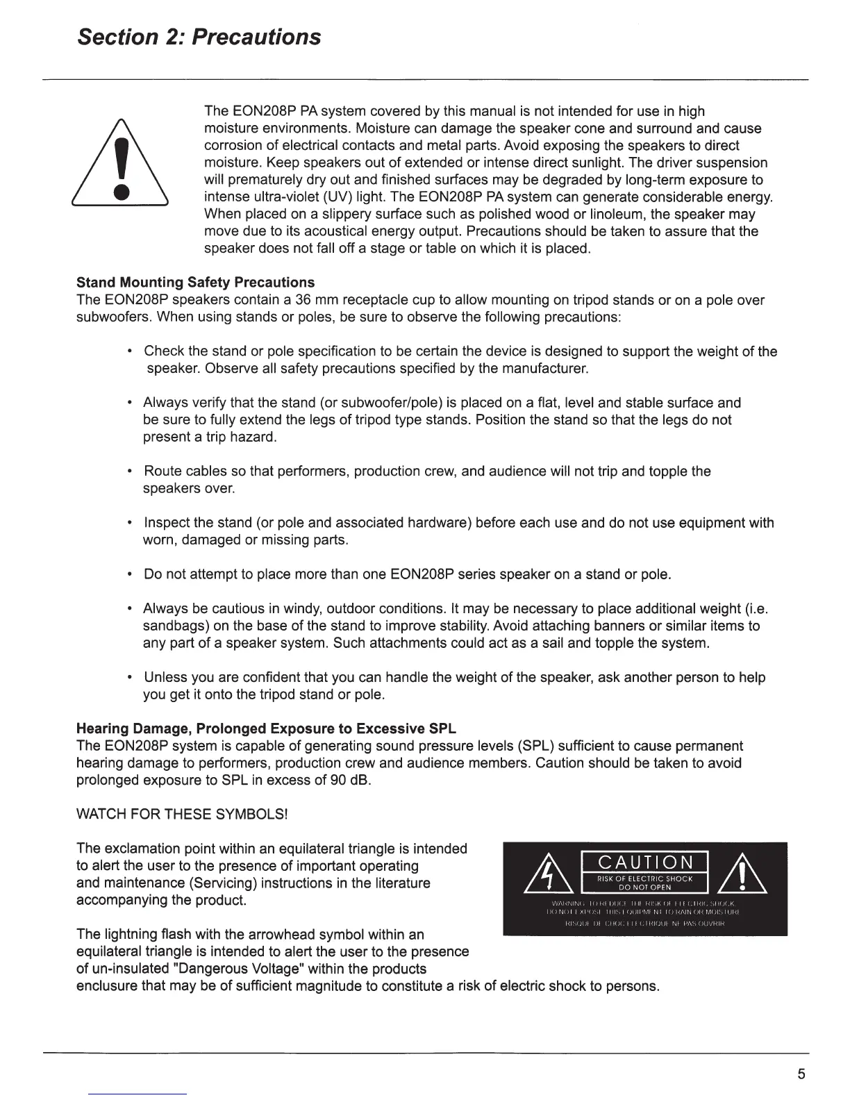 • Do not attempt to place more than one EON208P series speaker on a stand or pole.
